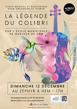 La légende du Colibri est un conte musical et écologique pour orchestre et chœur. Toute l’école de musique s’est fédérée autour de ce projet. Y participeront les élèves, les professeurs, les musiciens de l’Ensemble Orchestral de Hem.