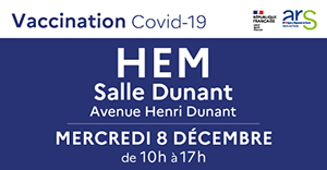 Rendez-vous mercredi 8 décembre de 10h à 17h à la salle Dunant, avenue Henri Dunant pour la dose de rappel ou une 1ère injection. Cette vaccination est ouverte à tous dès 12 ans, sans rendez-vous et gratuite. Il suffit de se présenter avec sa carte vitale et une pièce d’identité.