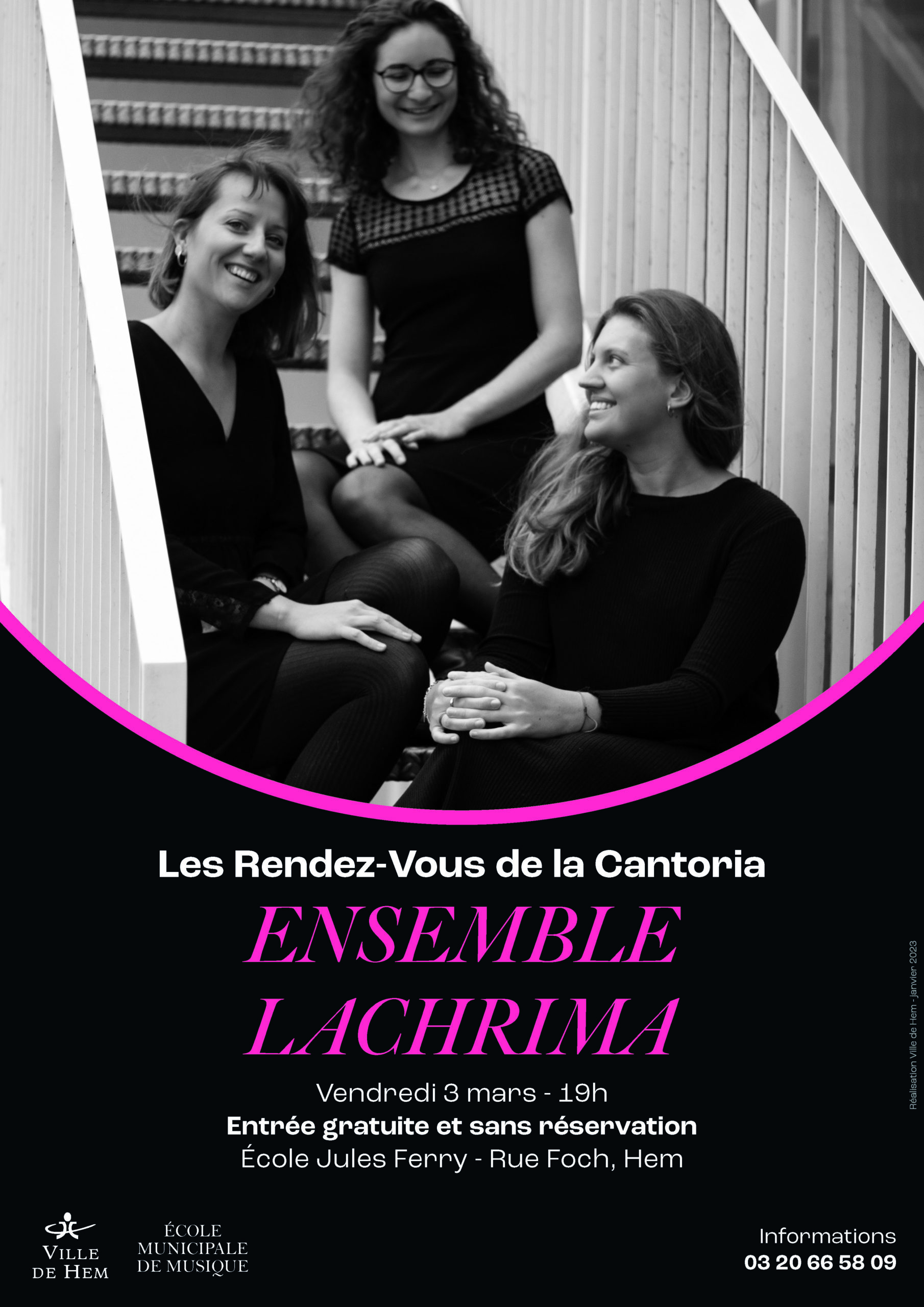 L’école Jules Ferry accueille le Rendez-vous de la Cantoria du 3 mars. L’ensemble Lachrima s’y produira pour un concert mêlant la douceur chatoyante de la flûte, la profondeur de la clarinette et les harmonies du piano. Au programme : les compositeurs français des XIXe et XXe siècles : Fauré, Debussy, Poulenc, mais aussi Gabriel