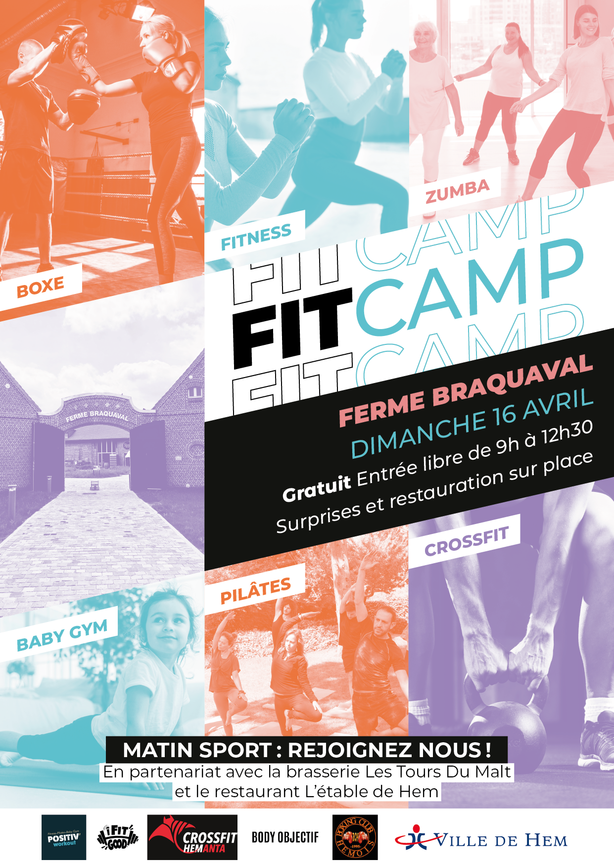Pour un dimanche matin sportif rendez-vous le 16 avril, de 9h à 12h30 à la Ferme Braquaval pour la première édition du FitCamp. En famille ou entre amis, venez participer à des séances de fitness, zumba, crossfit, boxe, pilâtes ou baby gym !