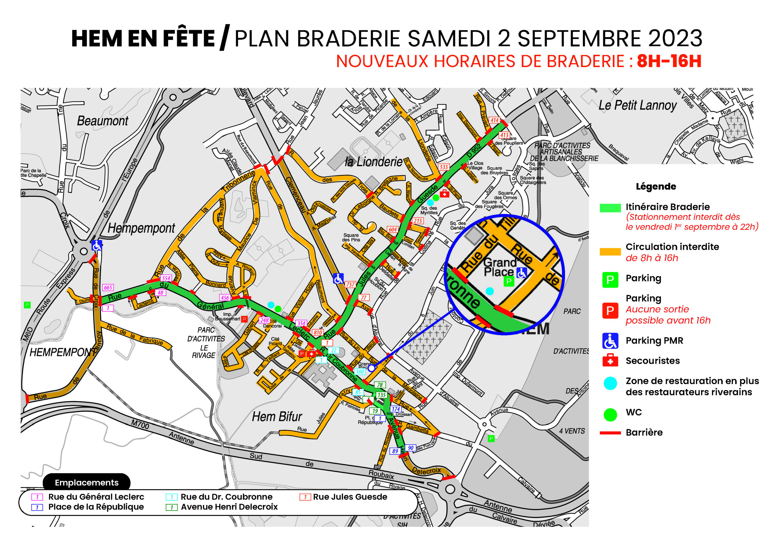 • Stationnement interdit sur la braderie du vendredi 1er septembre à 22h au samedi 2 septembre à 16h