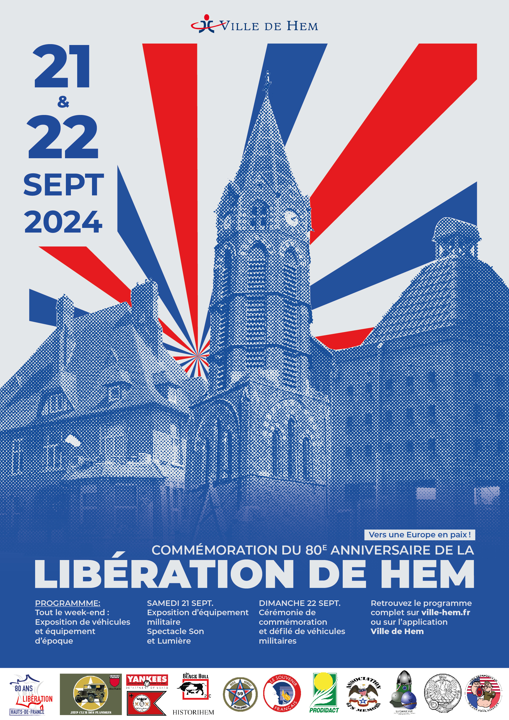 Il y a 80 ans, la Ville de Hem était libérée du joug des nazis par les forces alliées. Pour commémorer cet anniversaire, la Ville organise tout un week-end d’animations et de commémoration : reconstitution, cinéscénie et grand défilé commémoratif. Voici le programme !