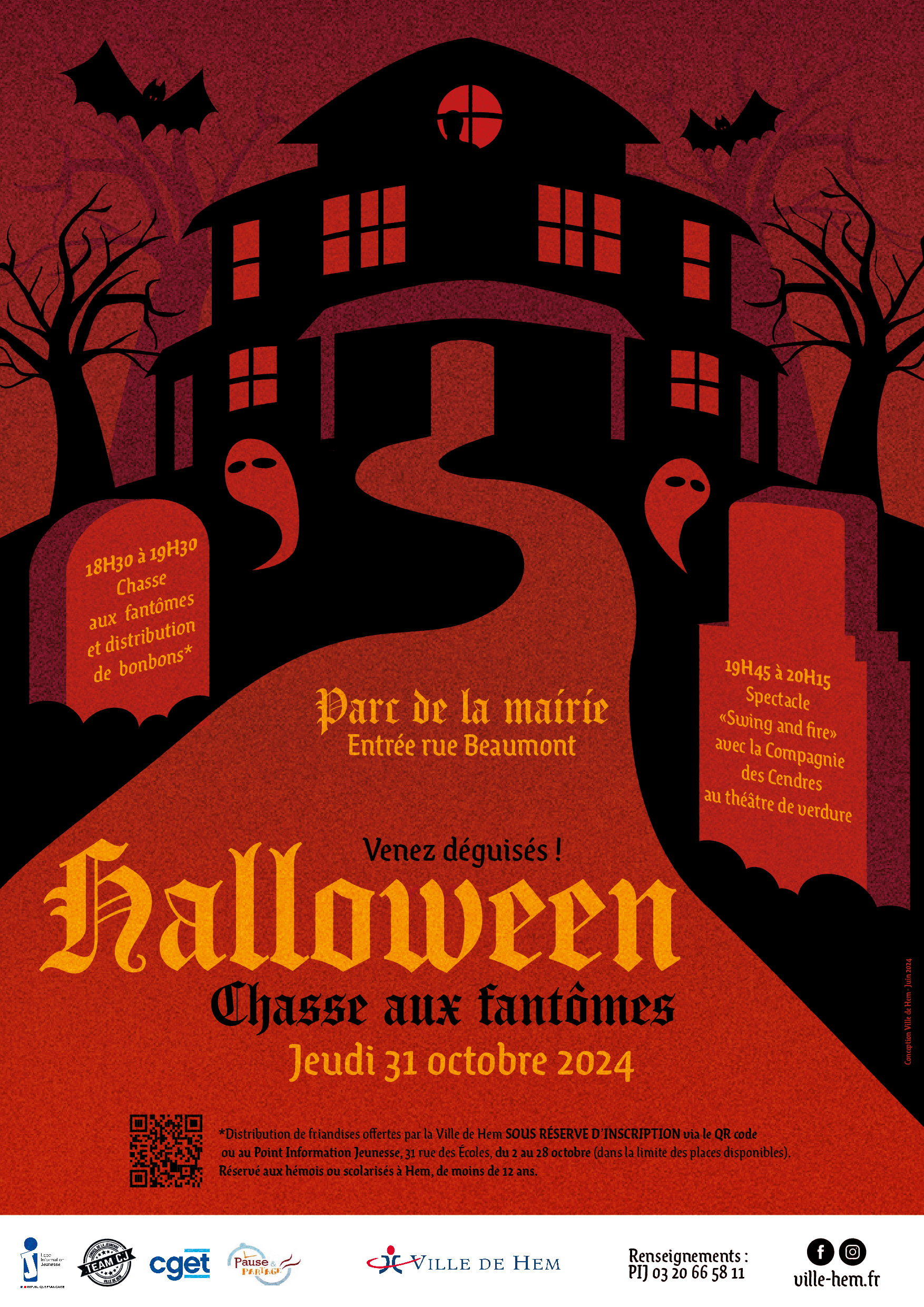 Les jeunes Hémois ou scolarisés à Hem et âgés de 12 ans et moins sont invités à se déguiser et à participer à cette chasse aux fantômes qui promet d’être riche en frissons et en bonbons. De 18h30 à 19h30, les enfants pourront parcourir
