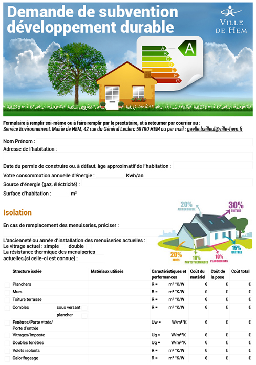 La ville de Hem participe à une dynamique globale d’encouragement aux travaux, en lien avec le développement durable, les énergies renouvelables, ou l’esthétique urbain, pour les habitations des hémois.