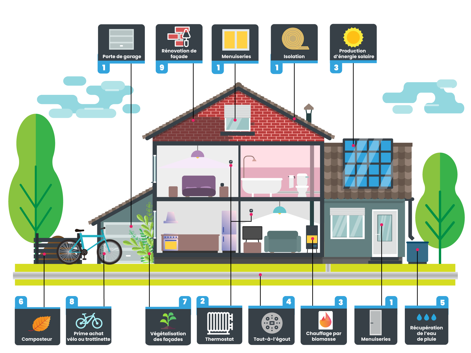 À travers la délibération cadre de juin 2018, la ville entend conforter l’aide financière apportée aux particuliers afin d’accompagner les actions individuelles de rénovation des habitations privées les plus anciennes, de favoriser les déplacements doux, de végétaliser les façades de rue, d’encourager les comportements durables de gestion d’eau, de déchets verts, et d’assainissement de la maison.