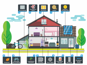 Coupe graphisme Maison avec pointage via pictos des différents aides