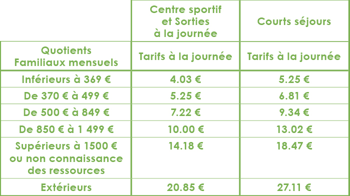Accueil > Enfance / jeunesse > ALSH d’été > Tarifs ados 7 - 13 ans