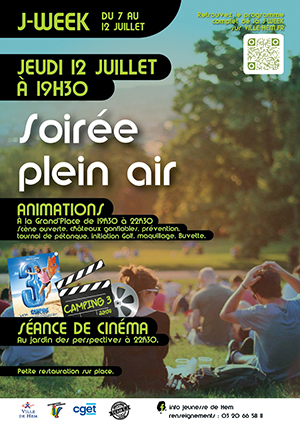 Dans le cadre de la semaine de la jeunesse, une grande soirée est organisée au jardin des perspectives. Au programme : animations variées (à 19h30) : jeux et châteaux gonflables, musique, Friterie/boissons/maquillage, scène ouverte jeunes talents, petite restauration : friterie/boissons. distribution de bracelets lumineux.