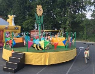 Un autre manège… Là, ce sont les enfants qui pédalent pour le faire tourner. Cela nécessite un peu d’énergie, une bonne synchronisation, mais avec beaucoup de plaisir à l’arrivée !