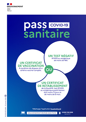 • Le pass sanitaire entre en vigueur mercredi 21 juillet 2021 pour les événements et lieux de loisirs ou de culture réunissant plus de 50 personnes.